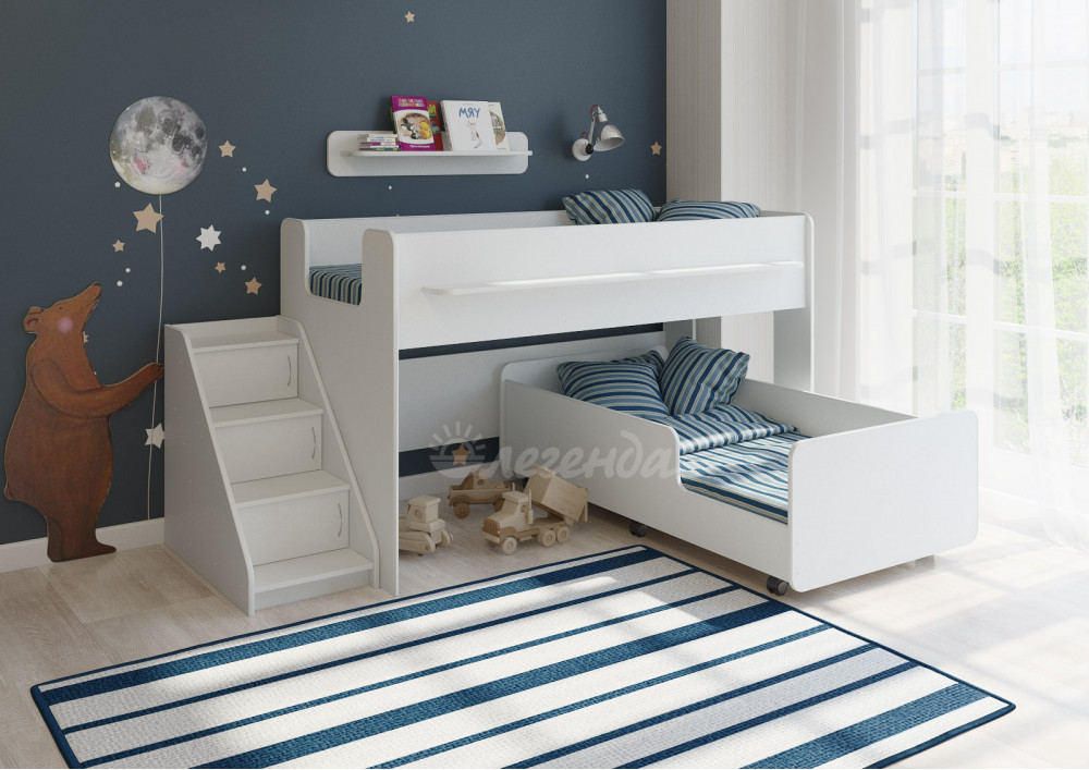 Детская выкатная белая кровать Легенда 23.4 – это удобно и практично.